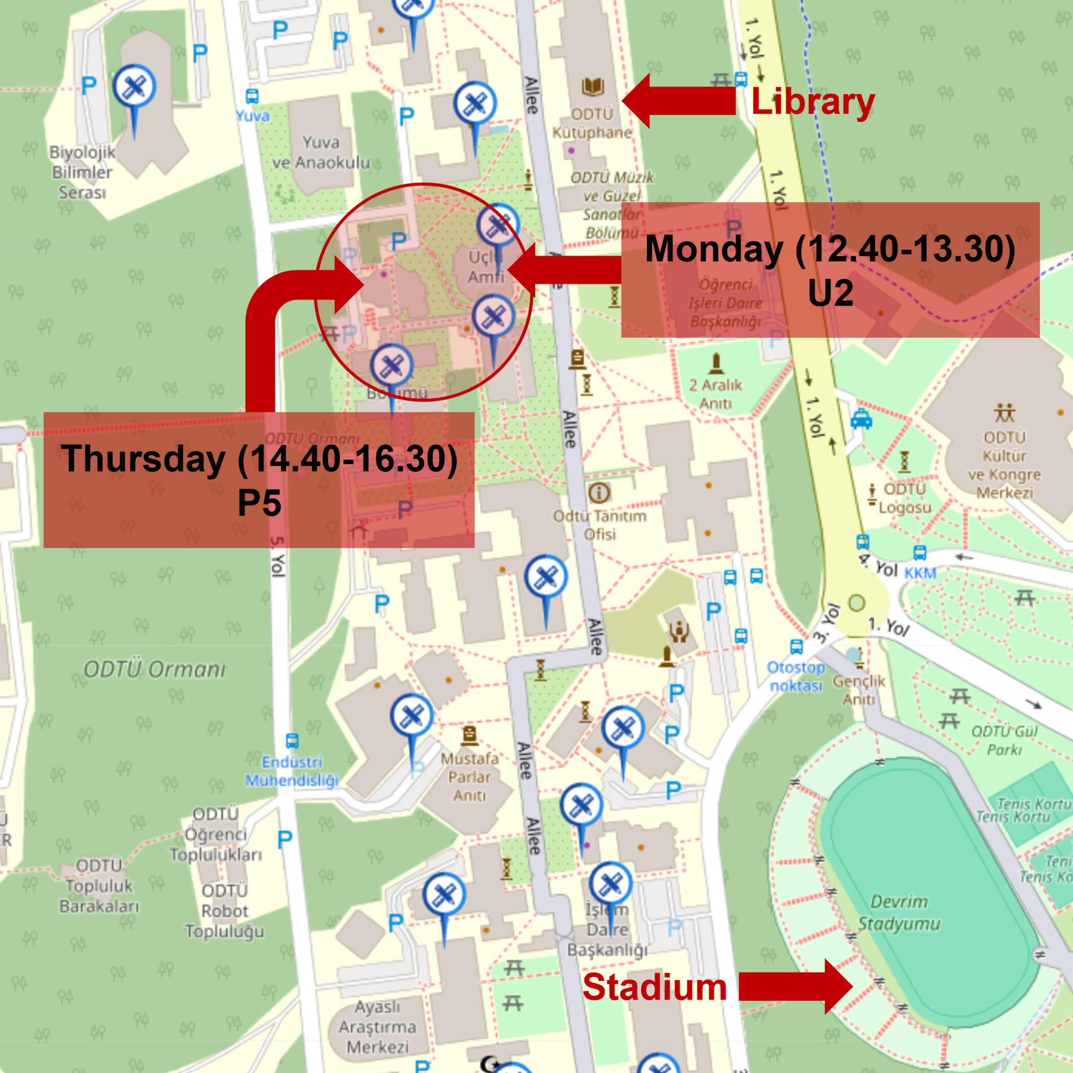 Refer to the academic catalog for general information about the course. For regulations specific to the current semester, read the Course Guidelines file. Check the ODTUClass page of your courses and your university email regularly to stay in touch with the latest updates.